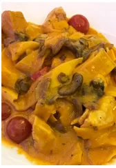 Antes de que se termine de cocinar, agrega los tomates cherry y un poco de curry al gusto. Por último, añade dos cucharadas soperas del caldo de la pasta al sofrito, escurre el resto de la pasta y mézclala con la salsa.